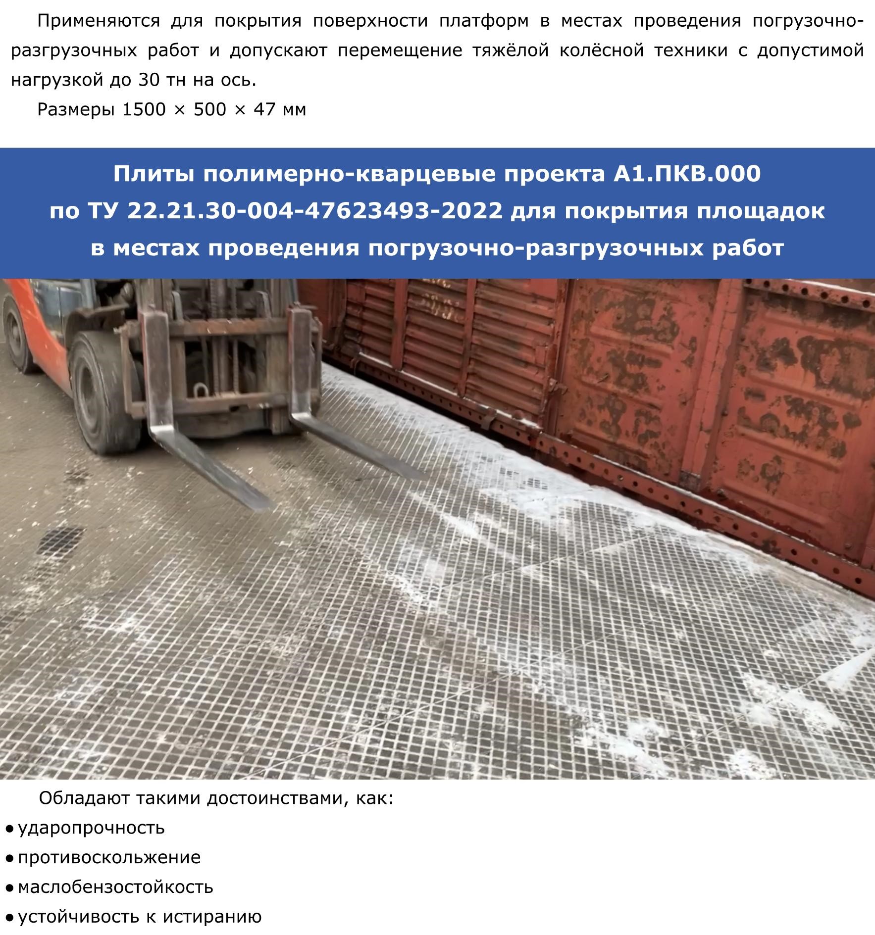 Плиты полимерно-кварцевые для покрытия площадок в местах проведения погрузочно-разгрузочных работ